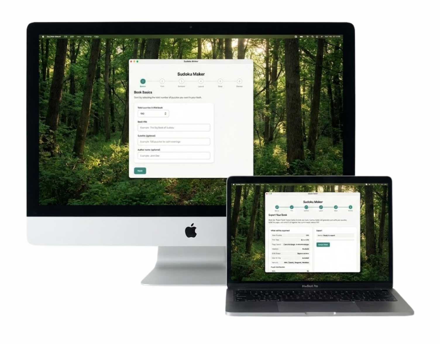 Desktop software (Windows & Mac) for creating KDP-ready to publish Sudoku books within minutes. Features 5 types of Sudoku (including Wordoku) – 6 difficulties and much more.